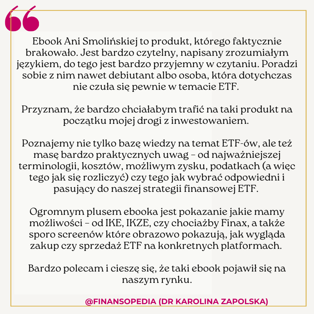 E-book pokazuje jak, jako początkująca inwestorka, krok po kroku zacząć inwestować w fundusze ETF i budować swój majątek.